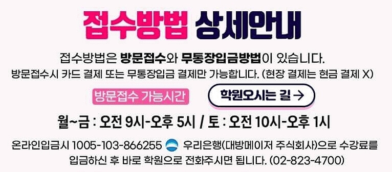 ▣ 수강료 : 20만원 / 단과로 신청시 과목당 12만원입니다.
