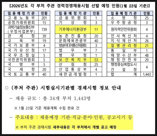 2026 인사혁신처 국가공무원 경력경쟁채용시험 통합 안내[기후에너지환경부, 보건복지부, 질병관리청]