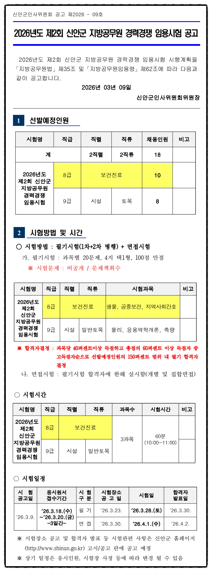 2026년 제2회 전라남도 신안군 지방공무원 경력경쟁 임용시험 시행 계획 공고[보건진료직]