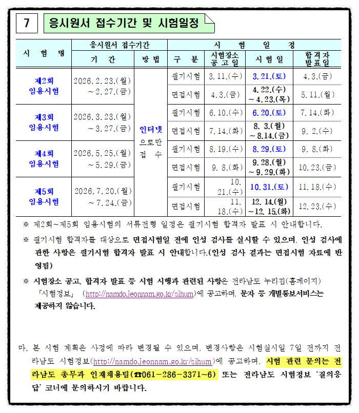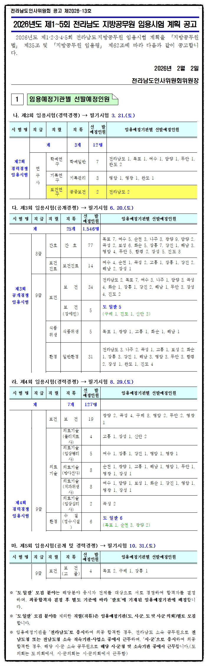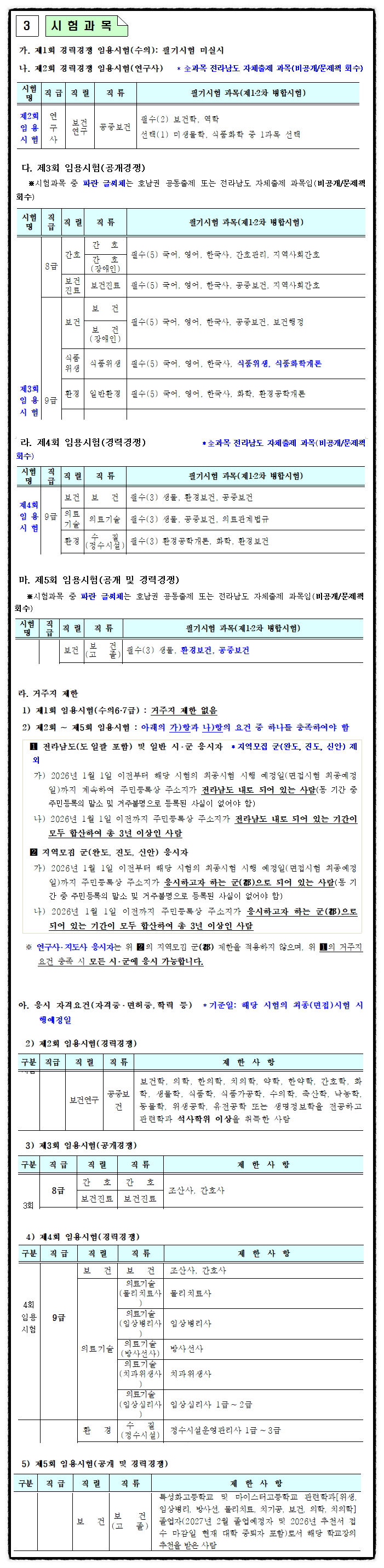 2026년도 제 2,3,4,5회 전라남도 지방공무원 임용시험 계획 공고 [보건연구,간호,보건진료,보건,식품위생,환경,의료기술]