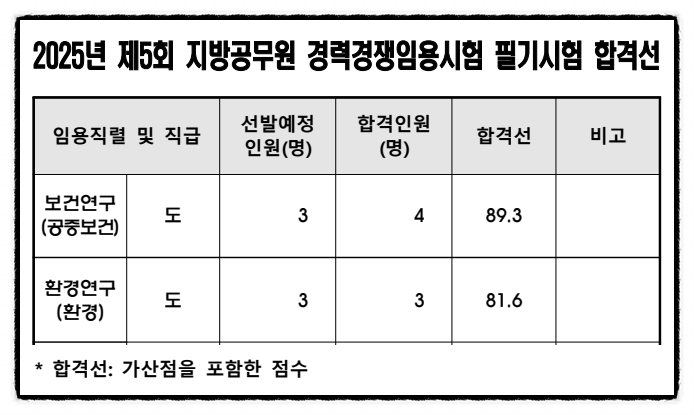 2025년도 제5회 제주특별자치도 보건연구사,환경연구사 공무원 경력경쟁임용 필기시험 합격선