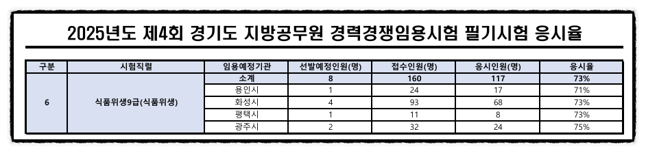 2025년도 제4회 경기도 식품위생직공무원 경력경쟁임용시험 필기시험 응시현황